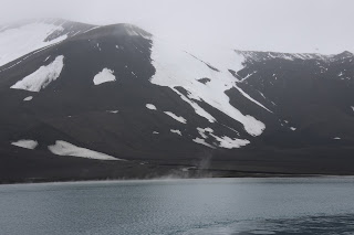 Others, including Bill and Linda went for a walk along the beach in the opposite direction. First of all checking out the warmth of the water below the volcanic gravel, having a closer look at the burnt out wrecks of the station, checking out the kelp. Came across a colony of cormorants. Walked a little bit further along the beach as the rain got a bit heavier turned into sleet and it became very windy and hard to walk.
